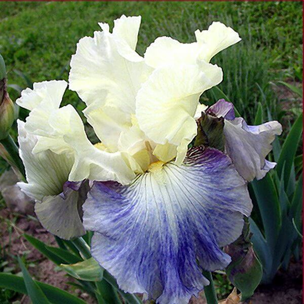 Ирис Seakist отличается кремово-белыми стандартами. Фолы белые, испещрённые и омытые голубым. Высота цветоноса 96 см.