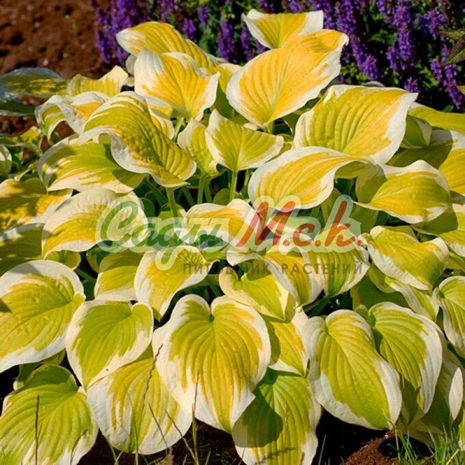 Хоста Austin Dickinson– многолетнее гибридное растение, образующее мощный куст средних размеров, во взрослом возрасте достигающий ширины свыше 110 см. Сорт отличается большими блестящими листьями овальной формы, собранными в крупные розетки. Сине-зеленые, морщинистые, слегка волнистые, среди других представителей декоративных многолетников они выделяются широкой чисто-белой или бело-кремовой окантовкой. Эффектность кусту придают и ароматные темно-пурпурные цветы, появляющиеся в июле-августе. Хоста Austin Dickinson предпочитает влажные, слабокислые почвы и хорошо разрастается в уголках сада с легкой тенью.