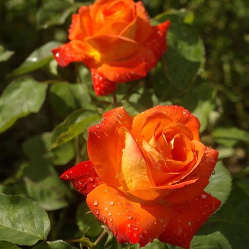 Роза France Libre - оранжево-красный, с медными оттенками цветок, золотисто-желтый на оборотной стороне лепестков. Диаметр цветка - 10-11 см. Бутоны крупные, махровые, классической бокаловидной формы, высокие в центре. Цветет в течение всего сезона. Куст вертикальный, высотой 80-100 см. Листва глянцевая, темно-зеленая.